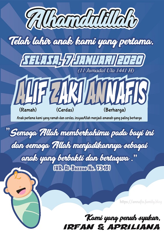 Sebelum cerita, saya ucapkan Alhamdulillah, anak pertama kami telah lahir pada Hari Selasa 7 Januari 2020 M (11 Jumadal Ula 1441 Hijiriah). Saking bahagia dan bersyukurnya, istri sampai tak sempat meluangkan waktu untuk menulis pengalaman bahagianya tersebut di weblog, jadilah saya yang sempatkan tulis. Itupun disela-sela istirahat gendong si debay, hehe. Jadi mohon maaf ya kalau nanti ceritanya terkesan lompat-lompat, insyaaAllah di lain kesempatan akan kami lengkapi detail dan penjelasannya. Kali ini kami hanya ingin mengabarkan berita bahagia ke temen-temen semua.
