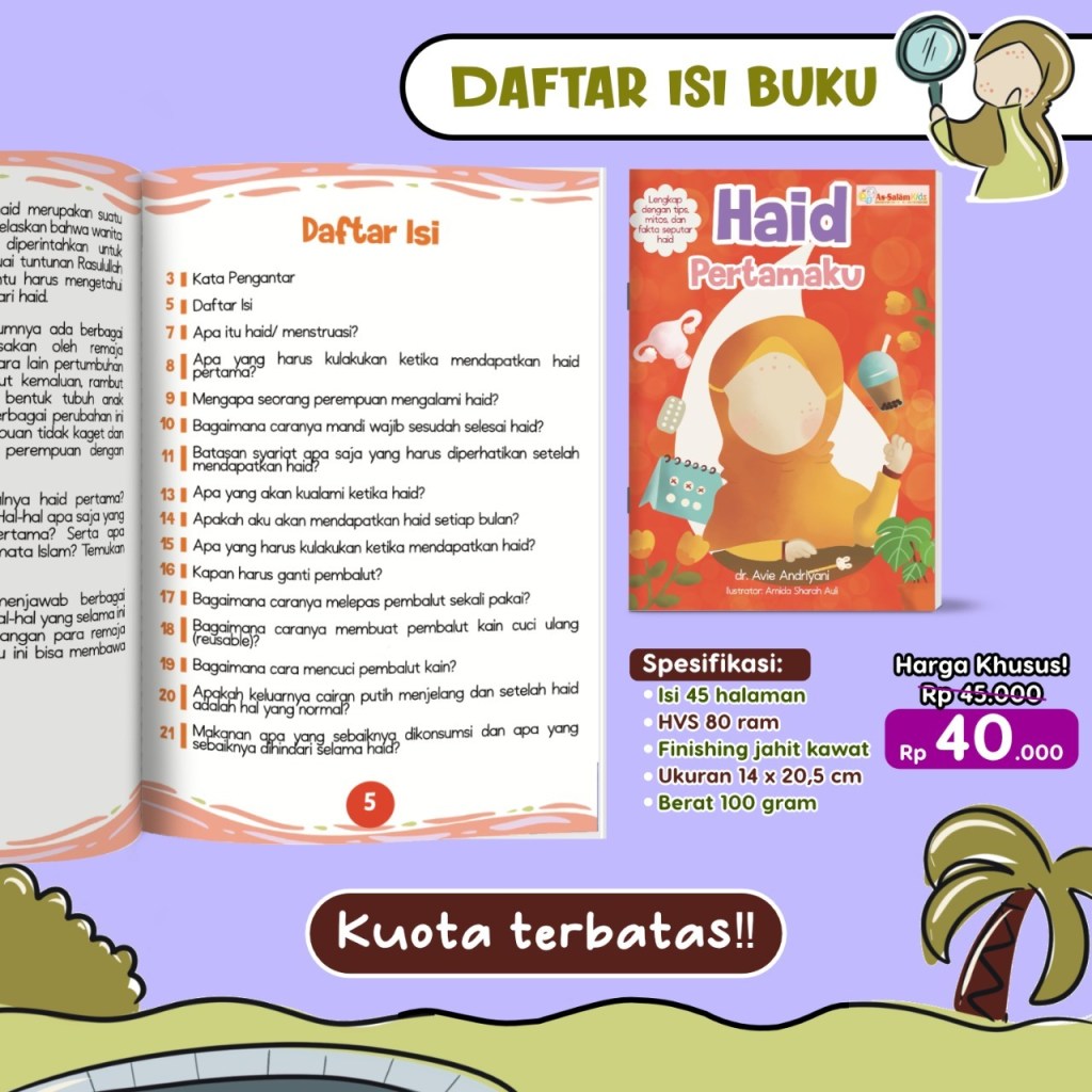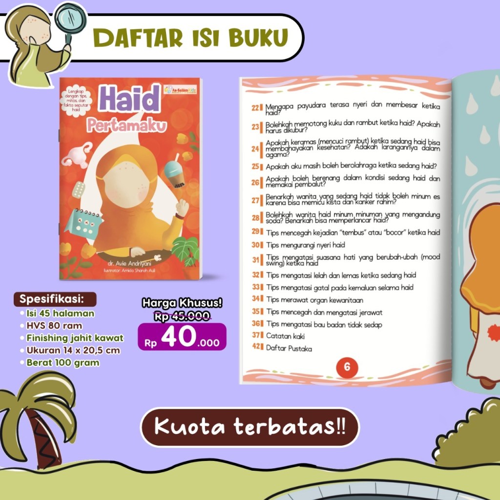 Ada, ini dia buku berjudul “Haid Pertamaku” yang disusun khusus untuk menjawab keingintahuan para remaja dalam menghadapi haid pertamanya.