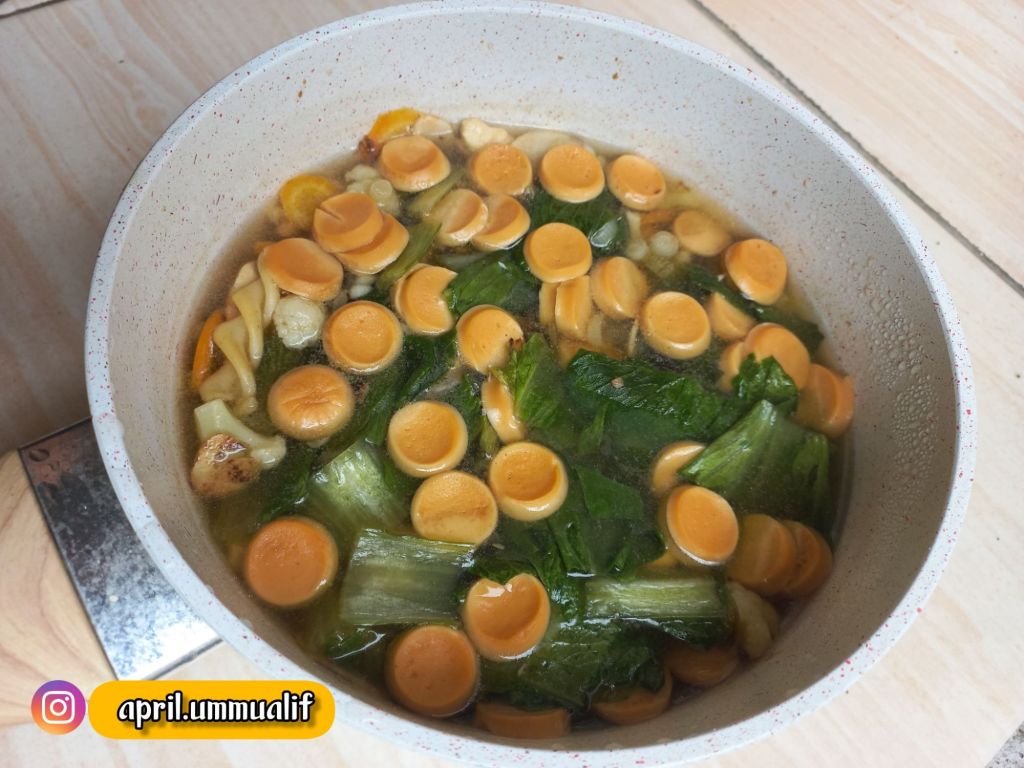 3. Siapkan panci berisi air kemudian masukkan tumisan tadi ke panci. Tunggu mendidih sambil masukkan bumbunya ya. Takarannya sesuai selera saja. Airnya pun juga sesuai selera tergantung banyaknya sayur.
